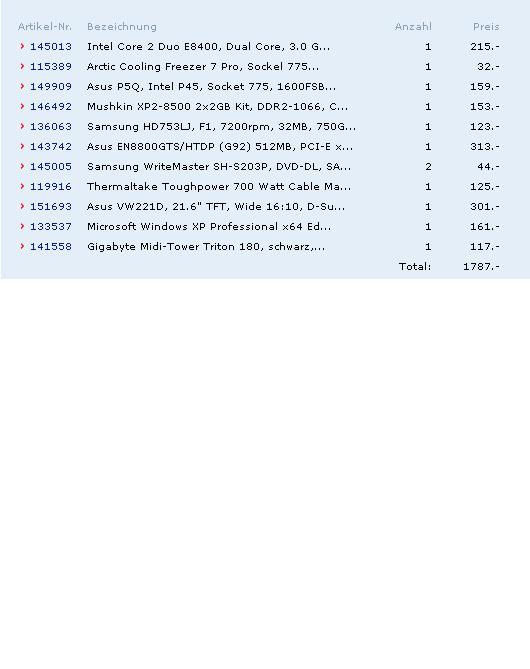 Noch was zu den Graka... Ich habe einfach schlechte Erfahrungen mit ATi gemacht, deshalb kommt es bei mir nicht in Frage so etwas in meine Kiste zu hauen!!