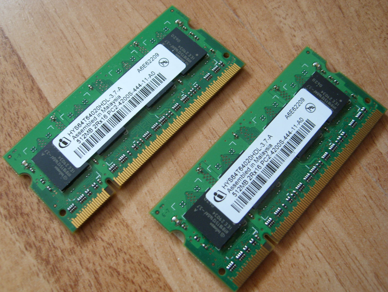 RAM: 2x PC2-4200, DDR2, je 512MB, Hersteller k.A. (sind Infineon Chips drauf), je 10.- exkl.
