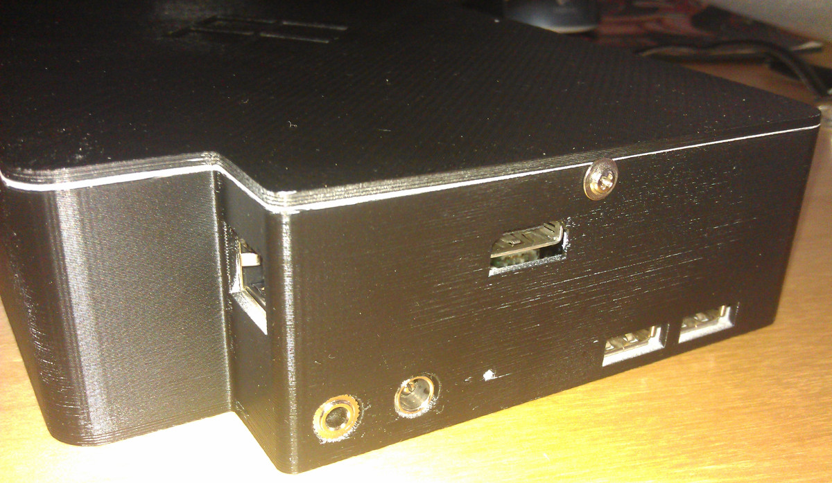 Die Schraubenlöcher fürs PI sind genial herausgekommen, da konnte ich die üblichen M2.5 Metallschrauben verwenden. Für den Deckel wollte ich ursprünglich M3 Metall nehmen, die liessen sich aber nicht so gut reindrehen, darum habe ich da Holzschrauben aus dem Fundus hervorgekramt. Funktioniert so auch super.Beim Loch für den HDMI-Anschluss habe ich mich ebenfalls um nen Millimeter verrechnet, das Kabel geht aber zum Glück trotzdem rein (ich habe 0.5mm spiel gelassen und den zweiten halben Millimeter kann man noch drücken :))