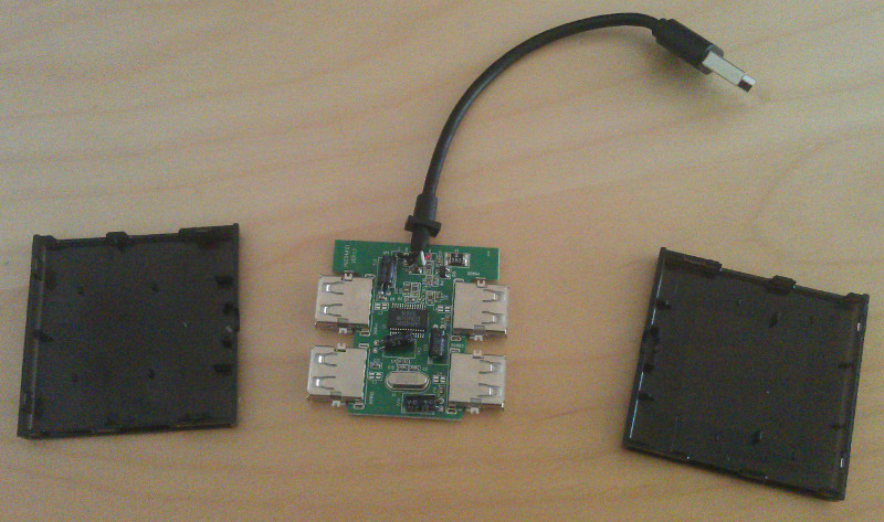 Drum habe ich die Platzprobleme so gelöst, dass ich das Micro USB Kabel geschält habe und direkt an den Hub gelötet habe. Im Funktionstest hats jedenfalls gut geklappt.Jetzt fehlt nur noch das Case