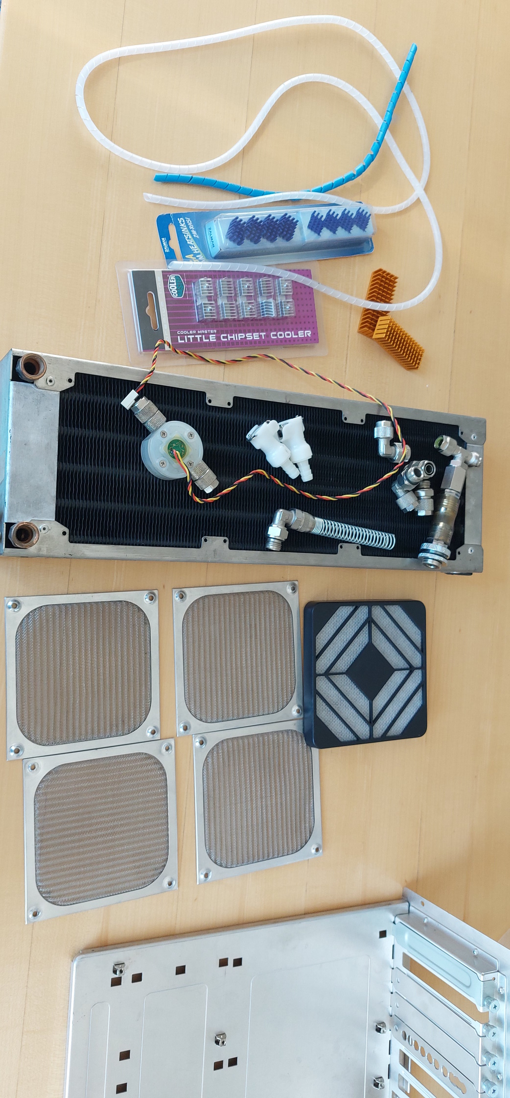 - 120mm Lüfter-abdeckungen. 4x Alu, 1x Plastik mit Filter.- ein paar Alukühlerprofile