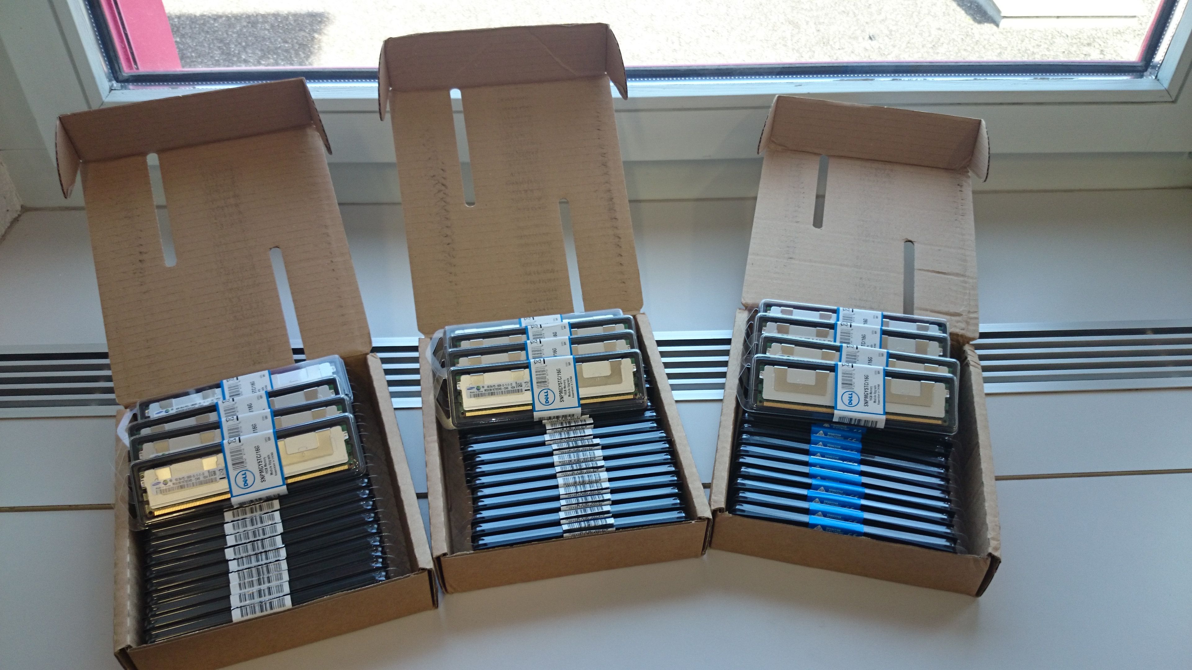 Ich verkaufe im Auftrag meiner Firma einige RAM Module, welche nach einem Upgrade nicht mehr verwendet werden. Es handelt sich um insgesamt 72 8GB Module von Samsung (m393b1k70chd-ch9 8GB 2Rx4 PC3-10600R-09-10-E1-D2).