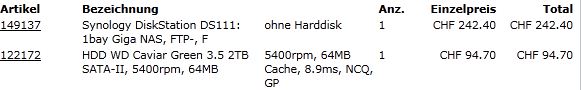 Dazu kämme noch die Festplatte, den das NAS wurde ohne geliefert.