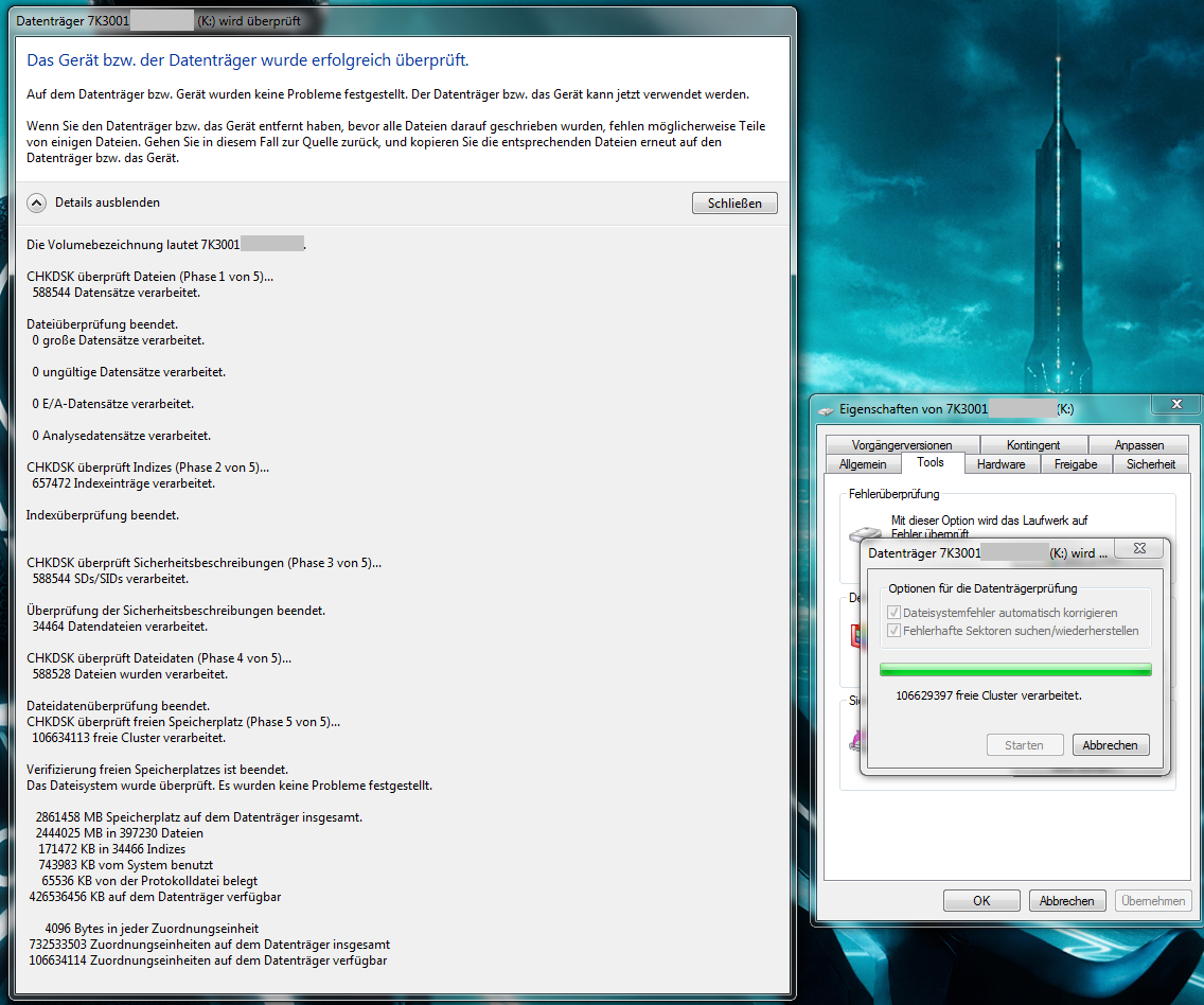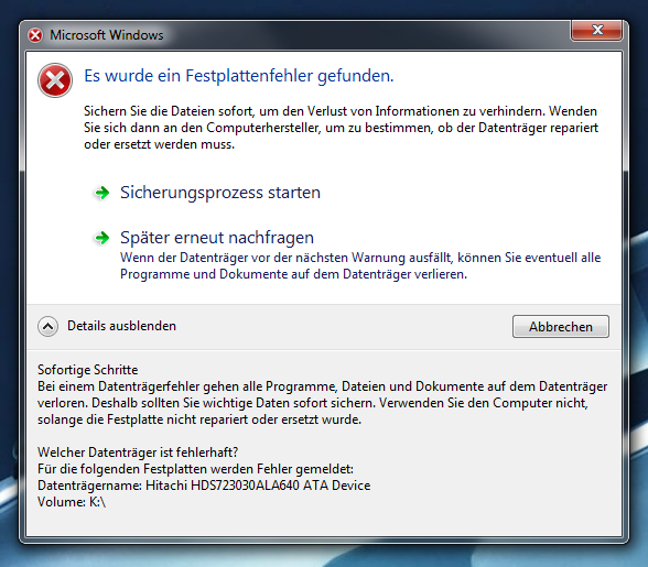 was sind eigentlich die Kriterien für Windows, dass ein Festplattenfehler vorliegt? vor 2 Wochen hatte ich auch schon Probleme mit der Platte ... man konnte nichts neues mehr draufschreiben, das System ist fast gefreezed und trotzdem hat Windows nie gemeckert, obwohl die Kopiergeschwindigkeit bis auf 0 KB/s runterging (>400GB frei).