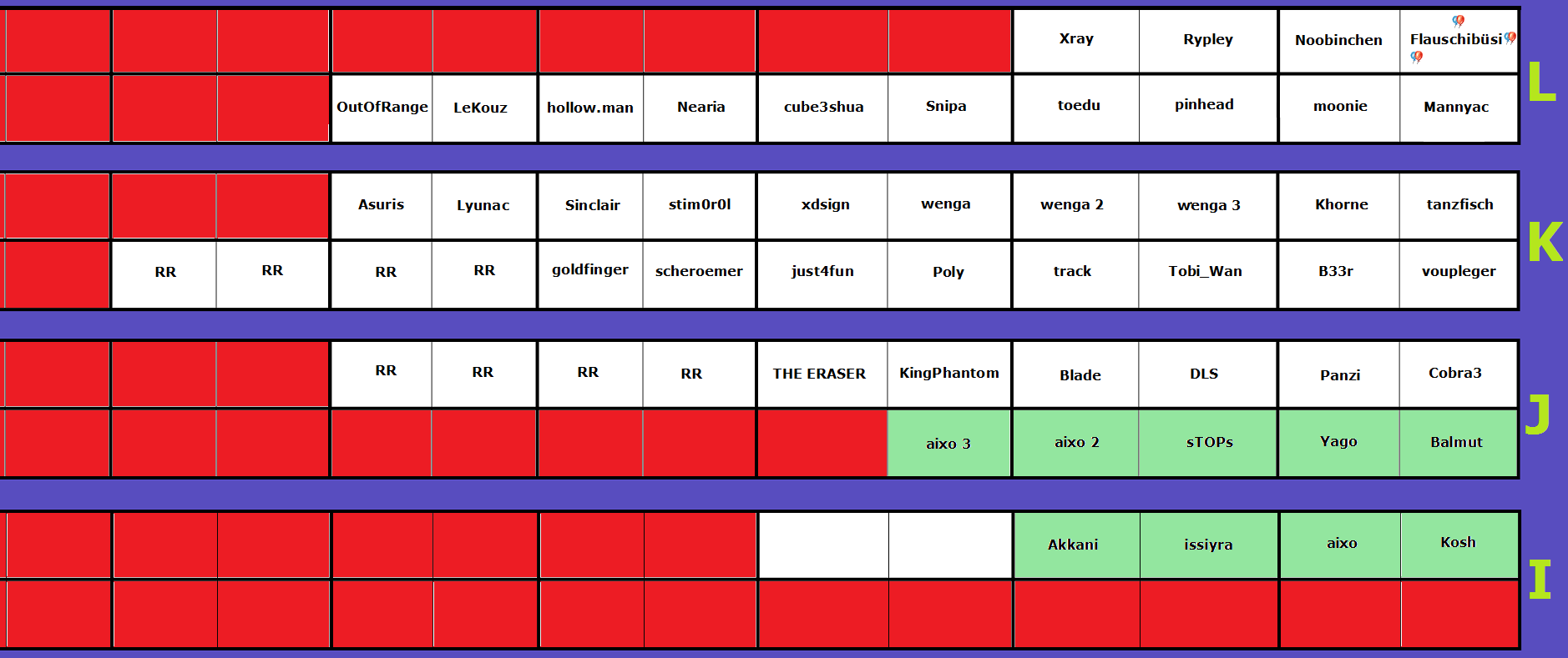-sowie die Tobi_Wan/Poly/RR-Gruppe nach rechts verschoben, damit die RRs weniger verzerrt zusammen sind.Die hellgrünen Plätze sind zZ komplett frei. Die weissen Plätze sind unter unserer Kontrolle, werden aber noch nicht oder nicht mehr benötigt. Wenn sich in wenigen Tagen nichts mehr tut und niemand was dagegen hat, kanns dann losgehen