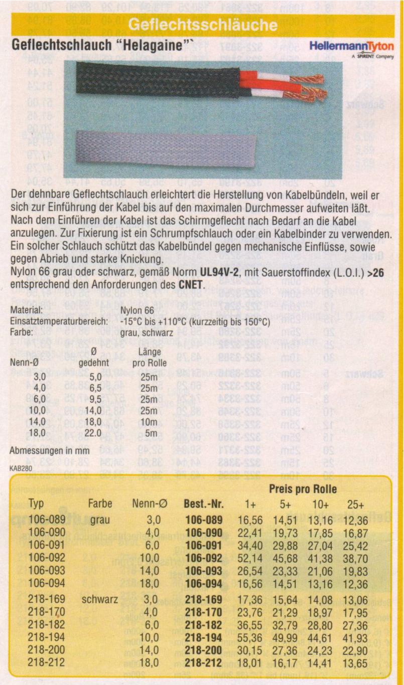 Die Kabel würde ich gerne noch einpacken, aber wo kriegt man das scheiss Kabelgeflecht her?http://www.farnell.com ... verschiedenste Materialien und verschiedenste Durchmesser. Lieferung per Express