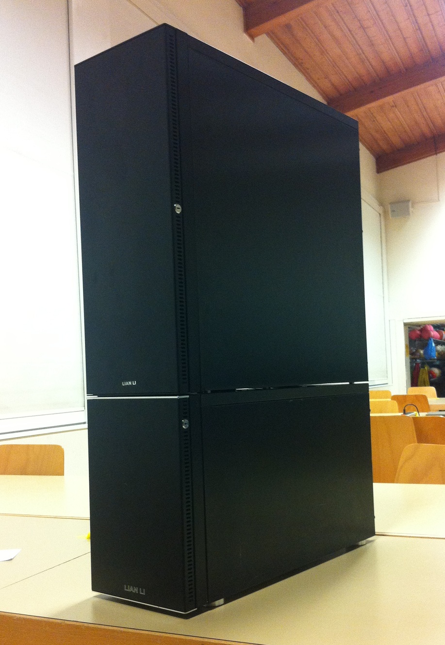 Man tut nicht 2 dutzend Platten rein und belässt es bei für Game-PCs üblichen 2-3 Lüftern. Wenn man wie bei Lian Li üblich mit einem Caselüfter 3-4 Platten kühlt, kommt halt einiges zusammen