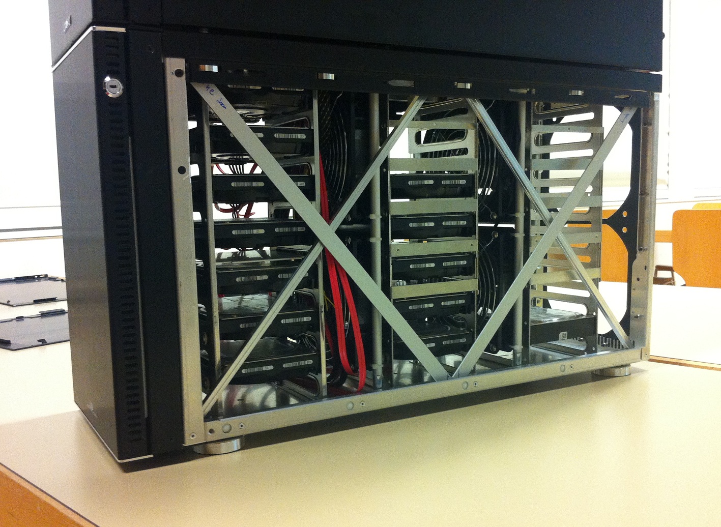 Ausserdem Physik für Fortgeschrittene: wenn das Gewicht vom Case mit Zunahme von Anzahl HDDs im gleichen Verhältnis ansteigt wie die Anzahl an Lüftern, dann wird es nie davonfliegen