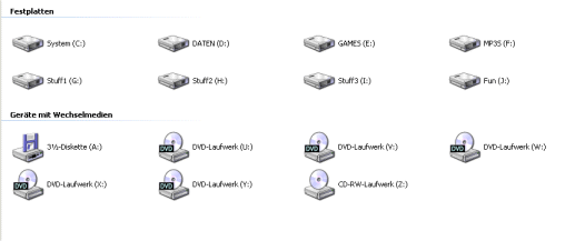 Meine Drives: (Laufwerke U-X sind DAEMON-Drives)