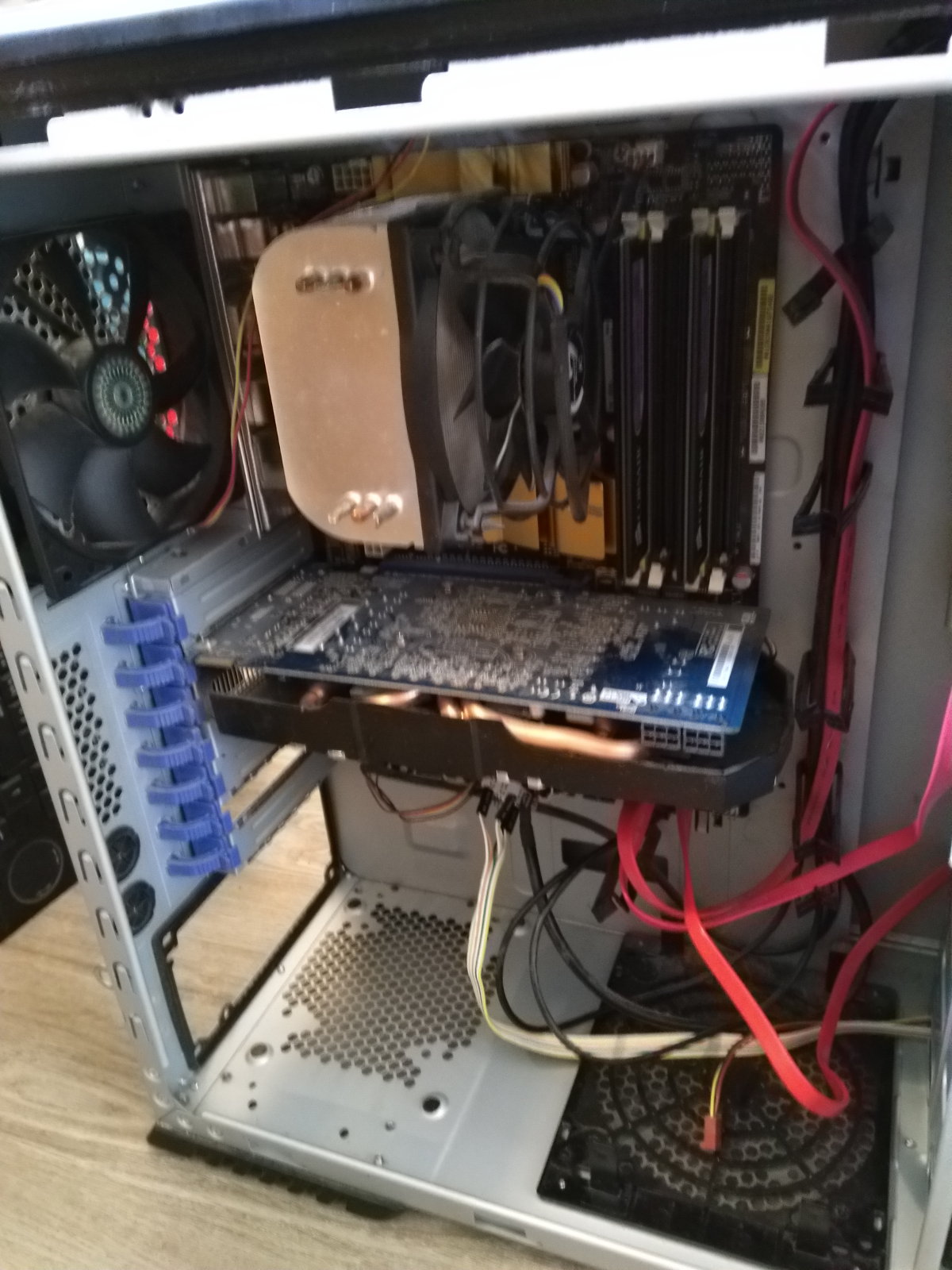 Laut Vorbesitzer hat der Computer gut funktioniert, bis auf ab und zu Bluescreens. Der Computer konnte letzte Woche nicht mehr eingeschaltet werde, stand bei mir ein Jahr rum.. Das BeQuiet Netzteil scheint futsch zu sein, auch mit Überbrückung konnte es nicht eingeschaltet werden. Deshalb kann ich leider keine Aussage machen ob der Rest noch funktioniert.