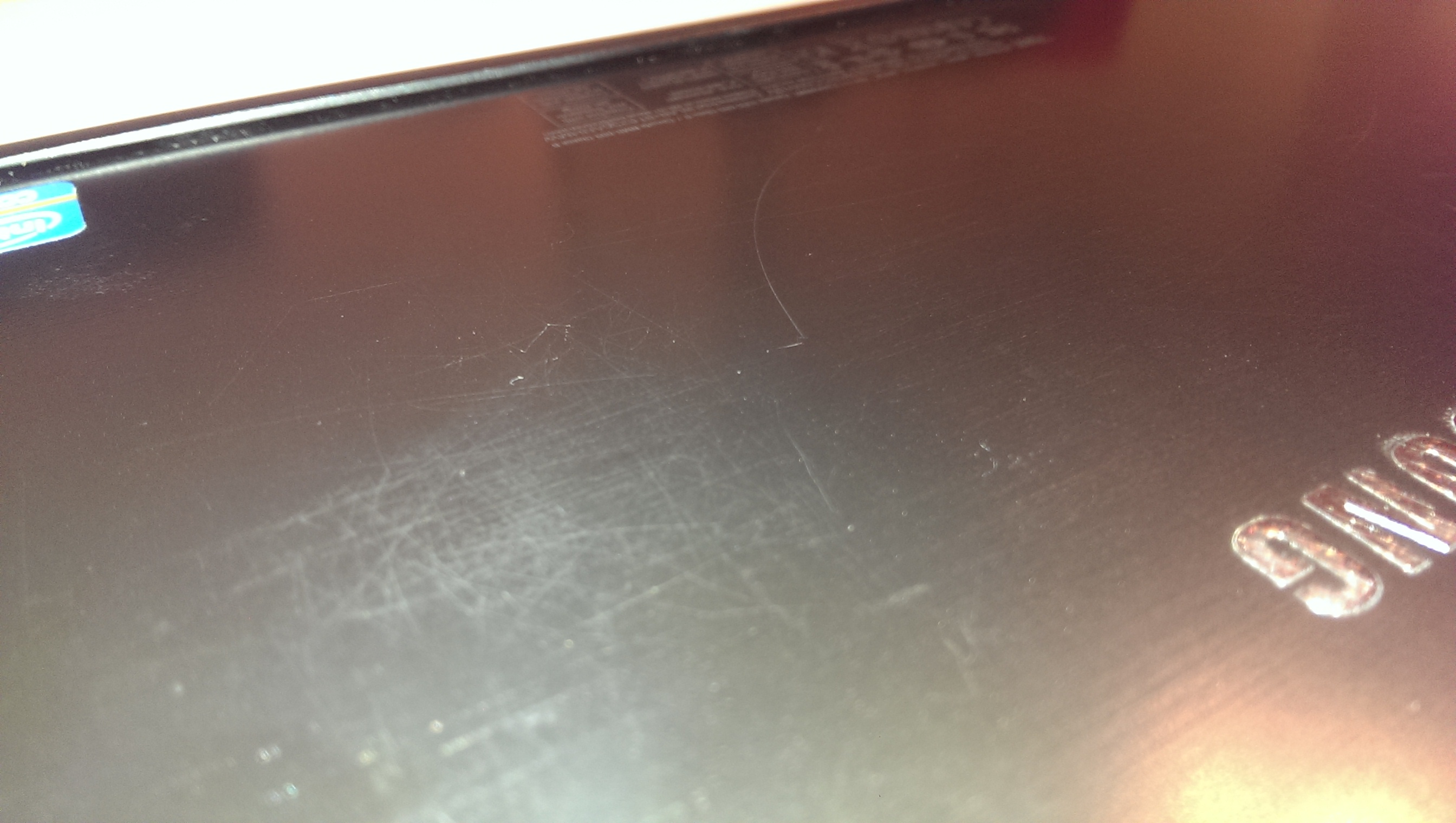 Rückseite hat Kratzer in der Oberfläche, da ich das Ding im Studium als Tablet auf dem Tisch herumgeschoben habe. Sonst keine Schäden.