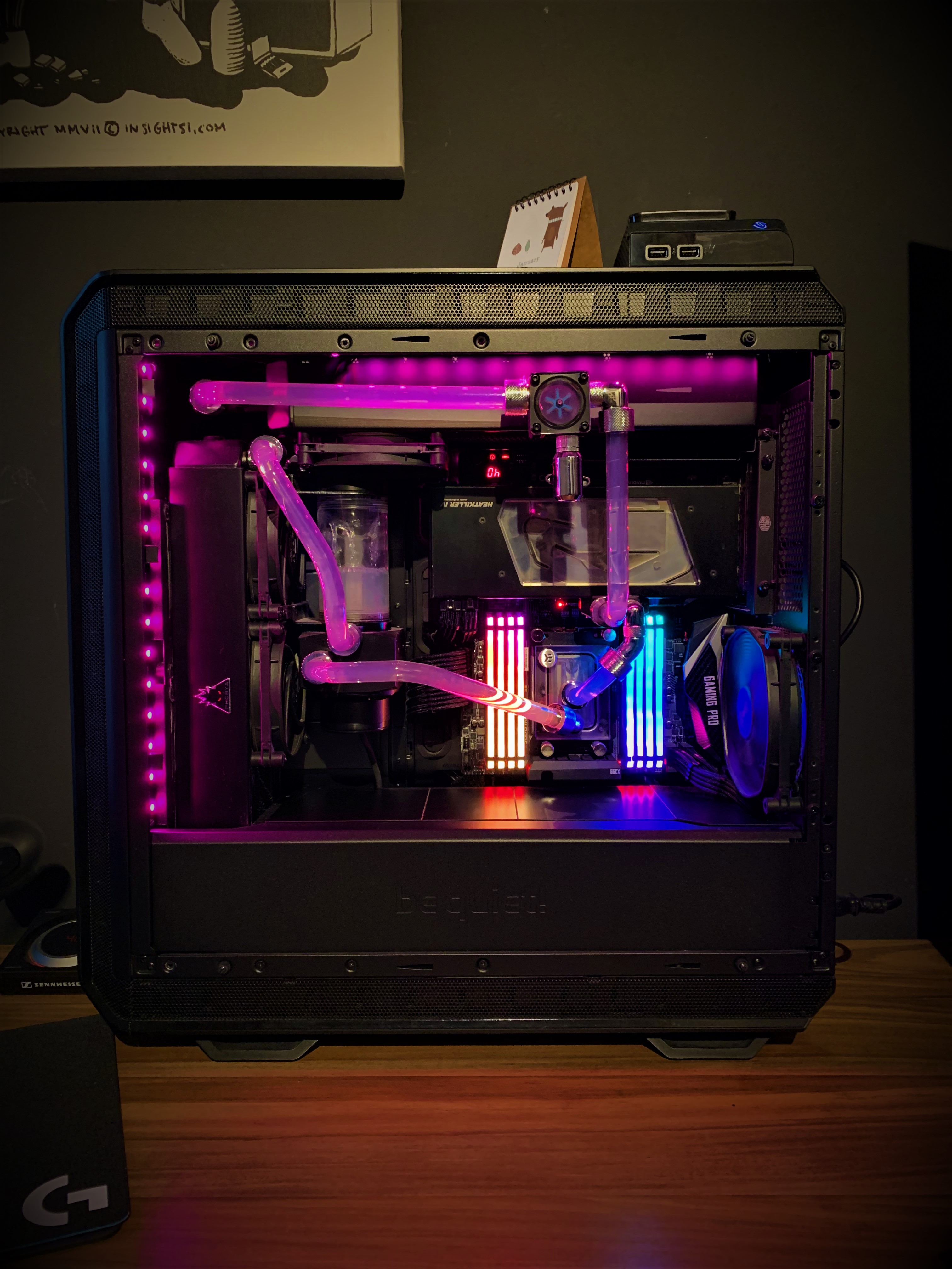 Ich hab auch bewusst keine RGB Lüfter drin da die alle zu laut waren (hab diverse Marken getestet) Nur mit Wasserkühlung und zwei Dicken 360mm Kupferradiatoren hat man den Luxus Stundenlang zu Rendern oder zu Gamen ohne dass die Lüfter auch nur annähernd Laut werden.