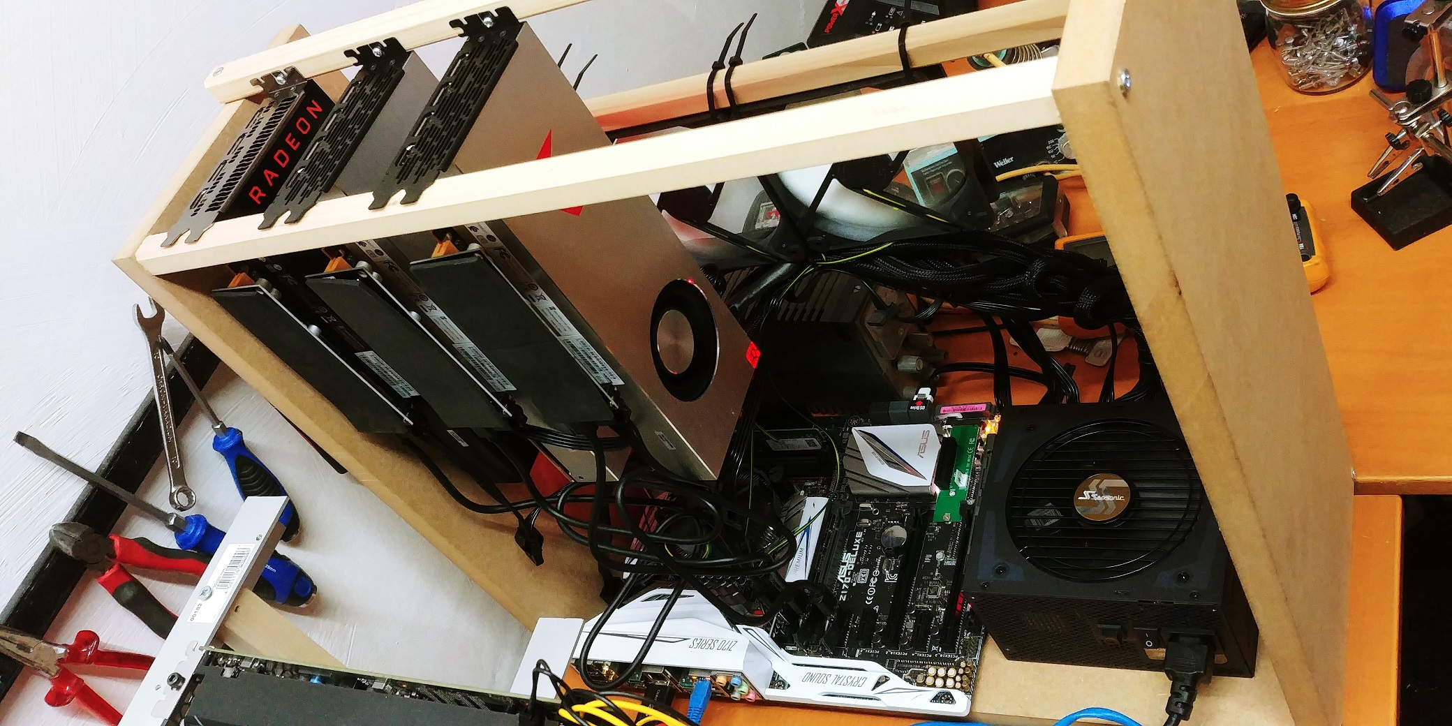 Grafikkarten: 3x Vega 64 (3x Sapphire) (wird noch aufgestockt auf hoffentlich 8x Vega 64)