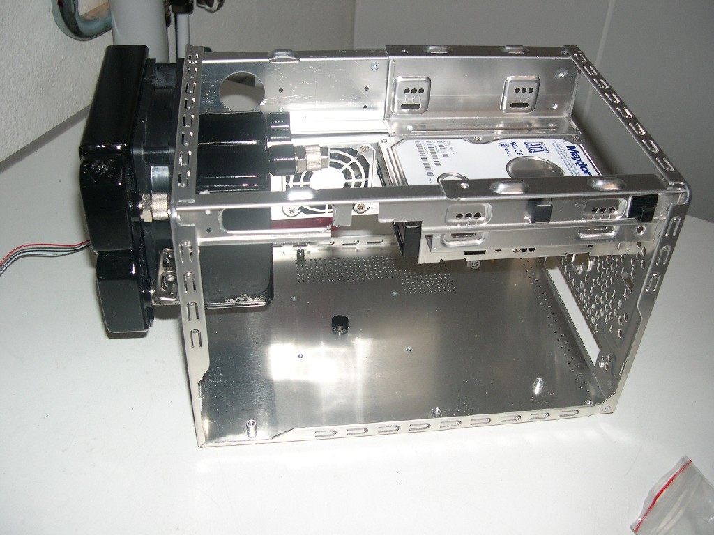 Die Halterung für CD-Rom, card-reader und HD hab ich mal bisschen kürzer gemacht, so hat nun halt der Card-Reader keinen platz mehr dafür kann ich unten an der HD meine Pumpe platzieren ![]()