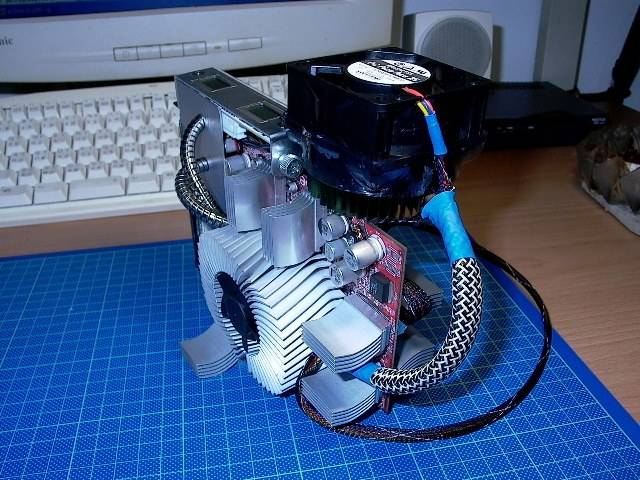 Für die Grafikrams habe ich mir bei Distrelec einen grossen Passivkühler geholt und diesen dann in 8 kleine zersägt ![]()