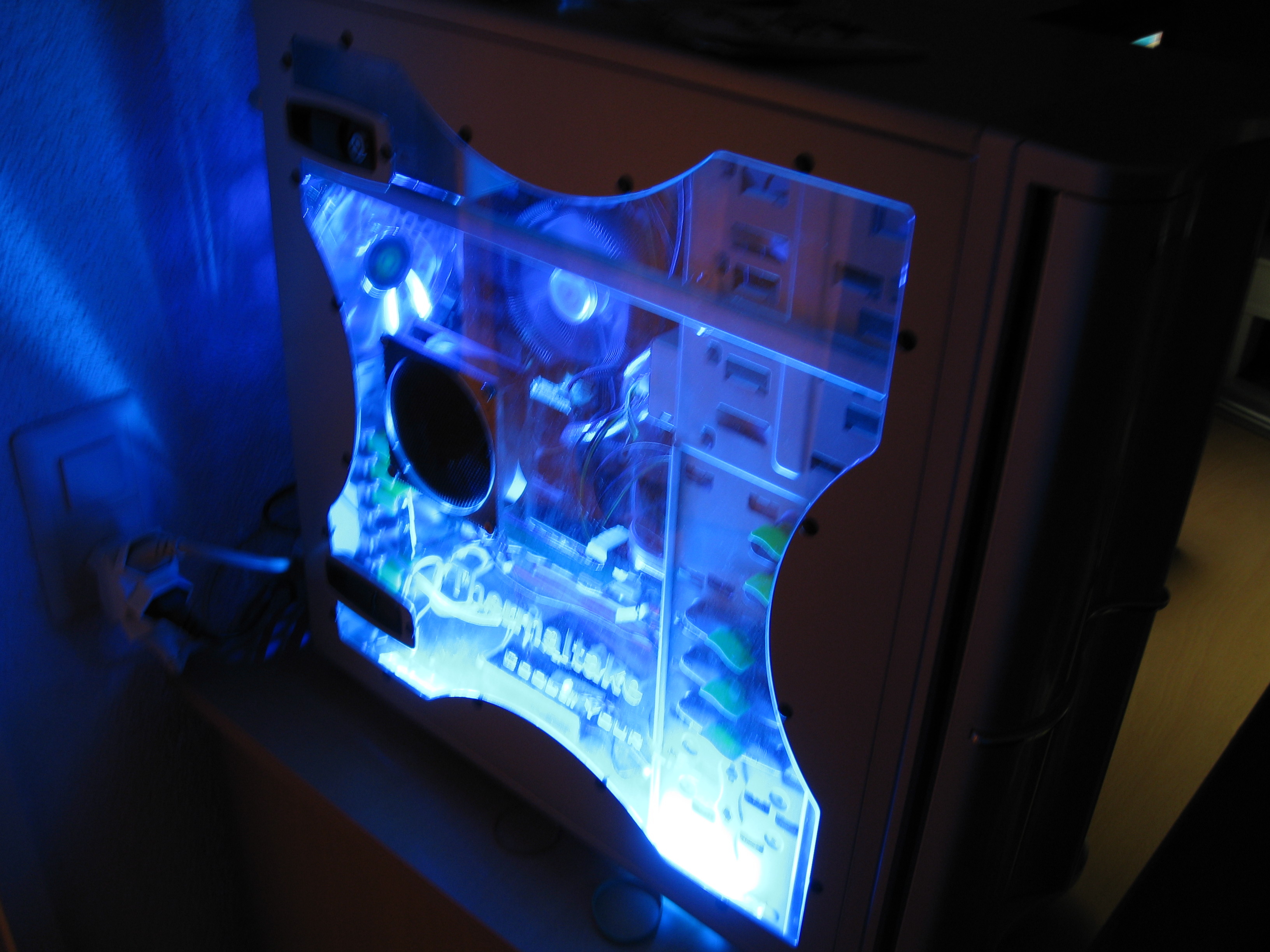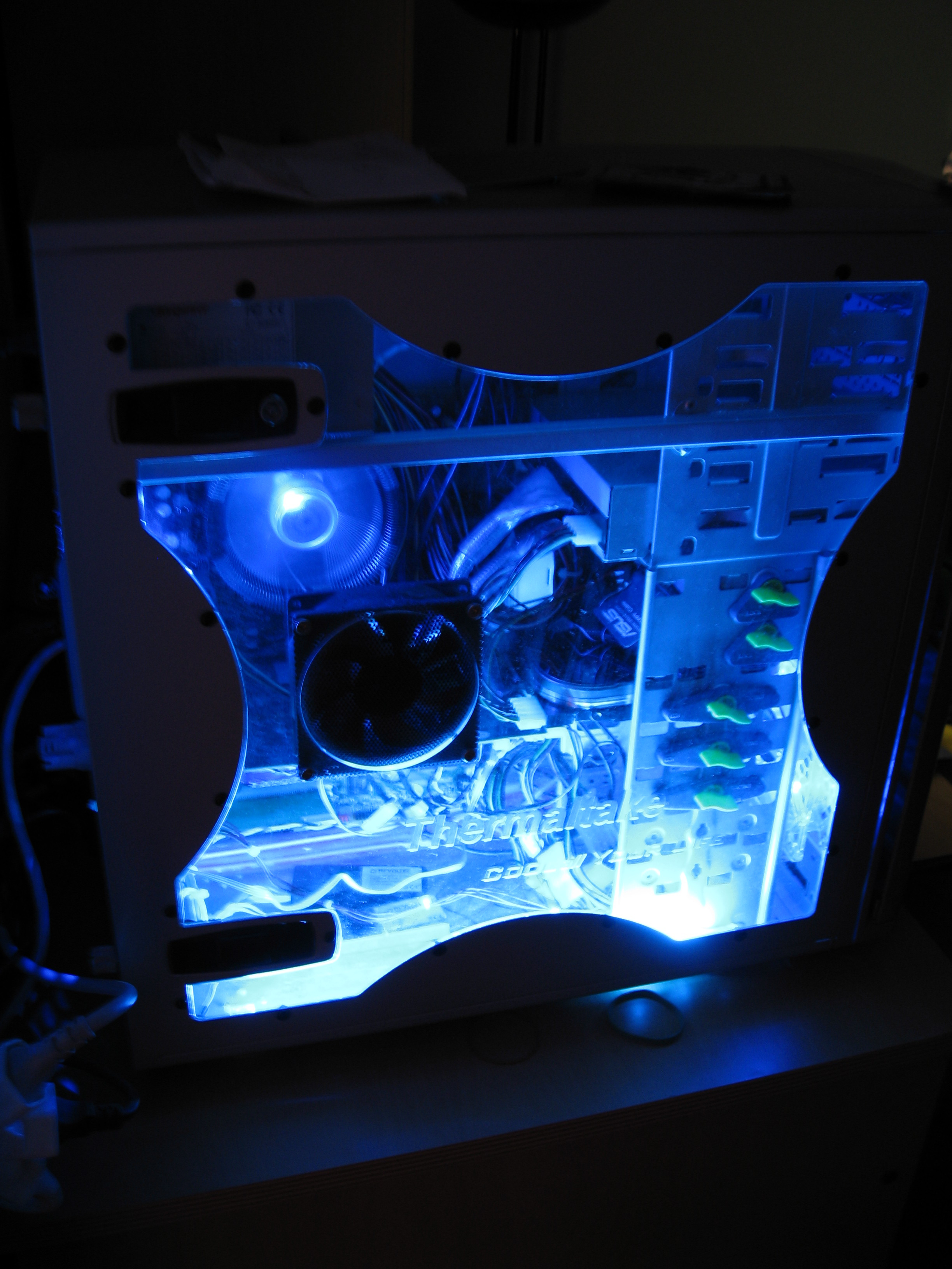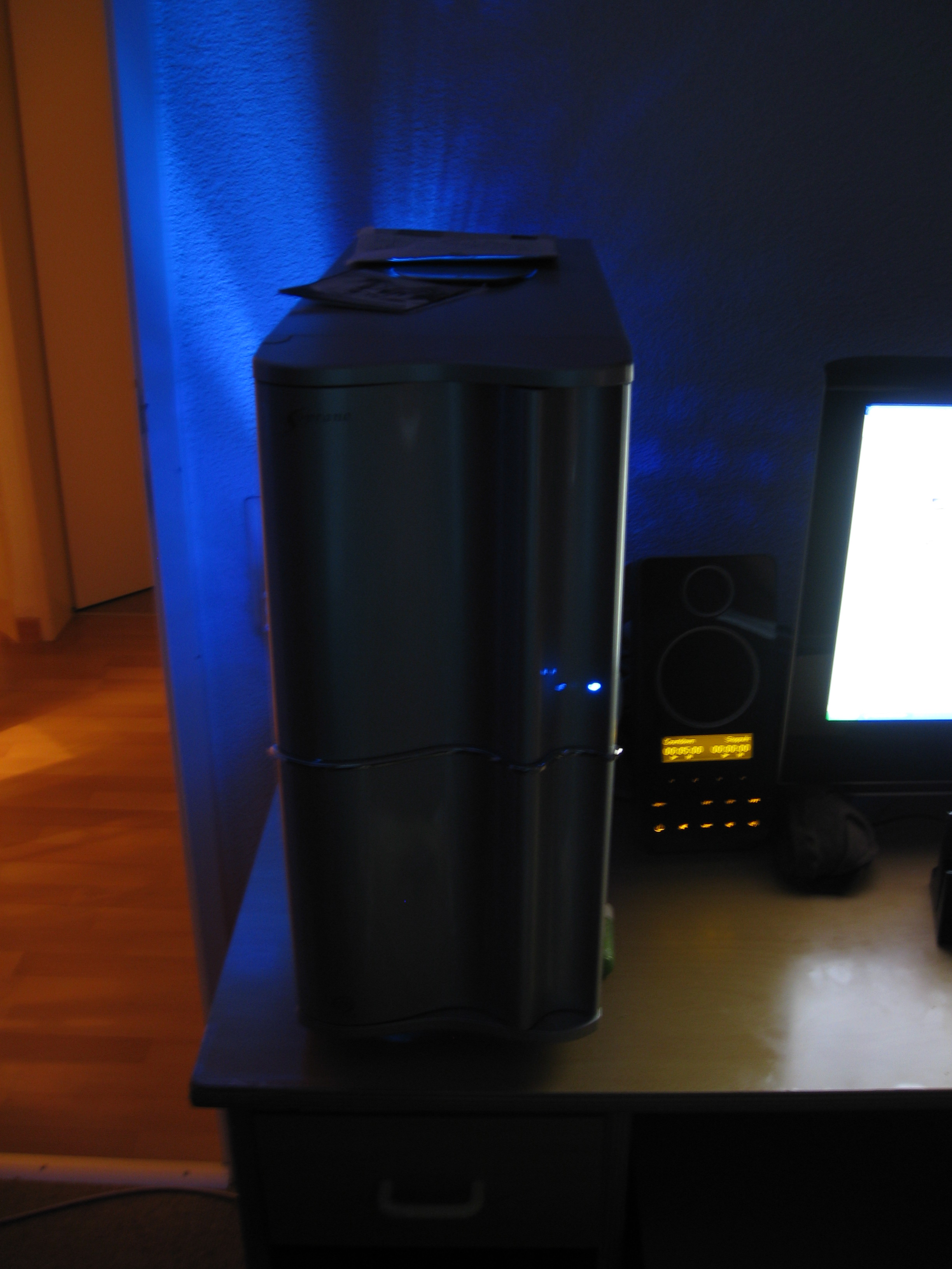 2x 120mm Lüfter (1x chrome blau beleuchet, 1x kunstoff blau beleuchtet)