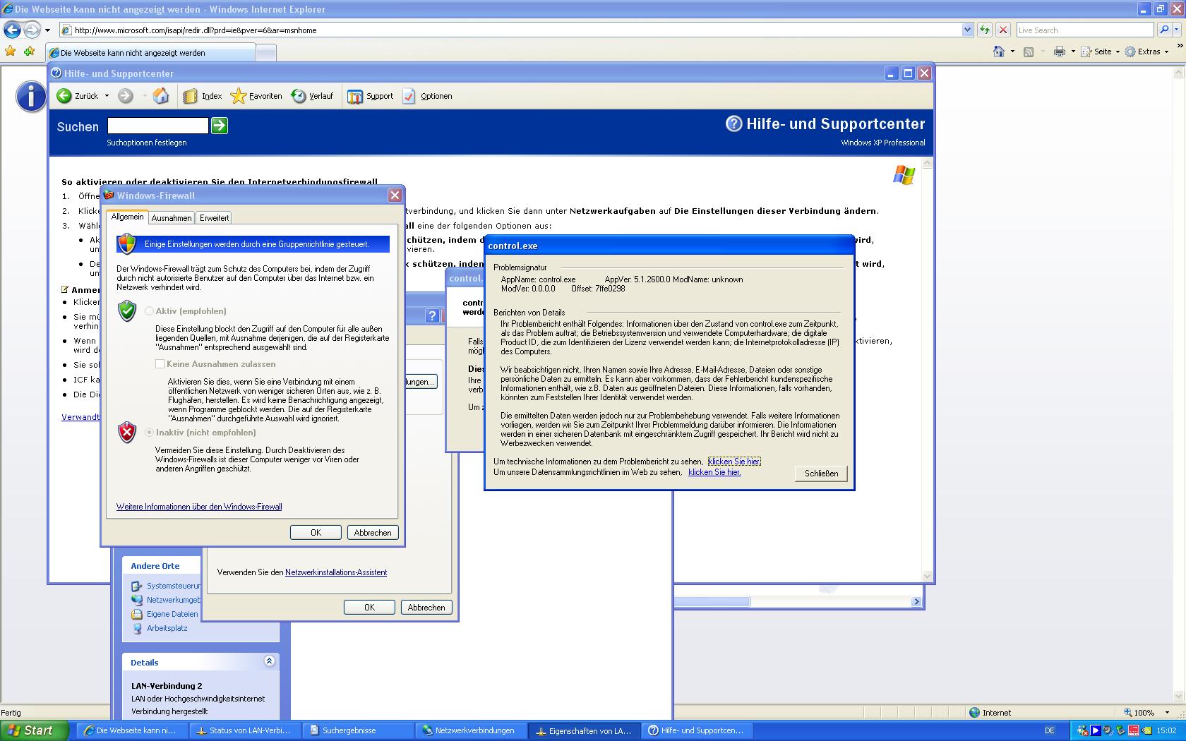 Bei SP2 kann ich zudem die Win-Firewall nicht konfigurieren und da wäre auch noch eine Fehlermeldung bei der ich nicht weiter weiss....