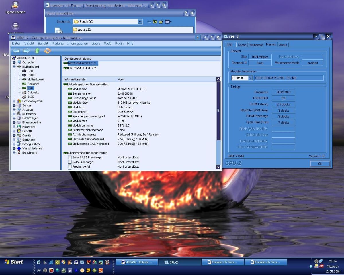 also noch im klartext 2x512mb corsair 3200cl2 gegen mdt 2700 cl2.5