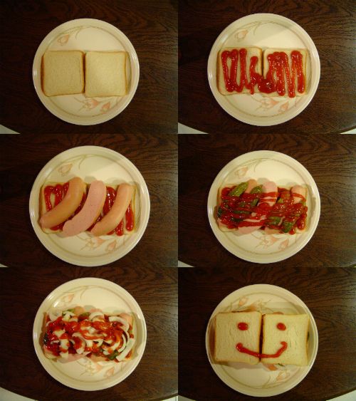 Mann nehme zwei Toast-Scheiben und mache ne Schicht Ketchup druff.
