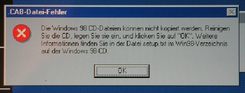 hab bei nem alten Laptop versucht WIN98 zu isntallieren.