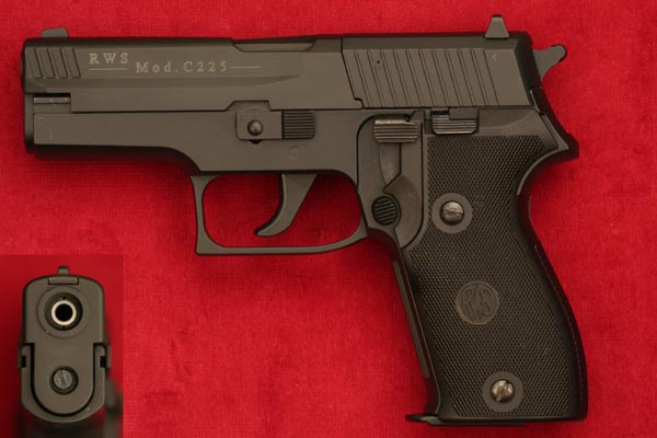 Die Luftdruckpistole funktioniert mit Gaskapseln. Die Projektile sind sogenannte Diabolo Geschosse. Diese werden in Trommeln à 8 Geschossen eingesetztRWS Mod. C225