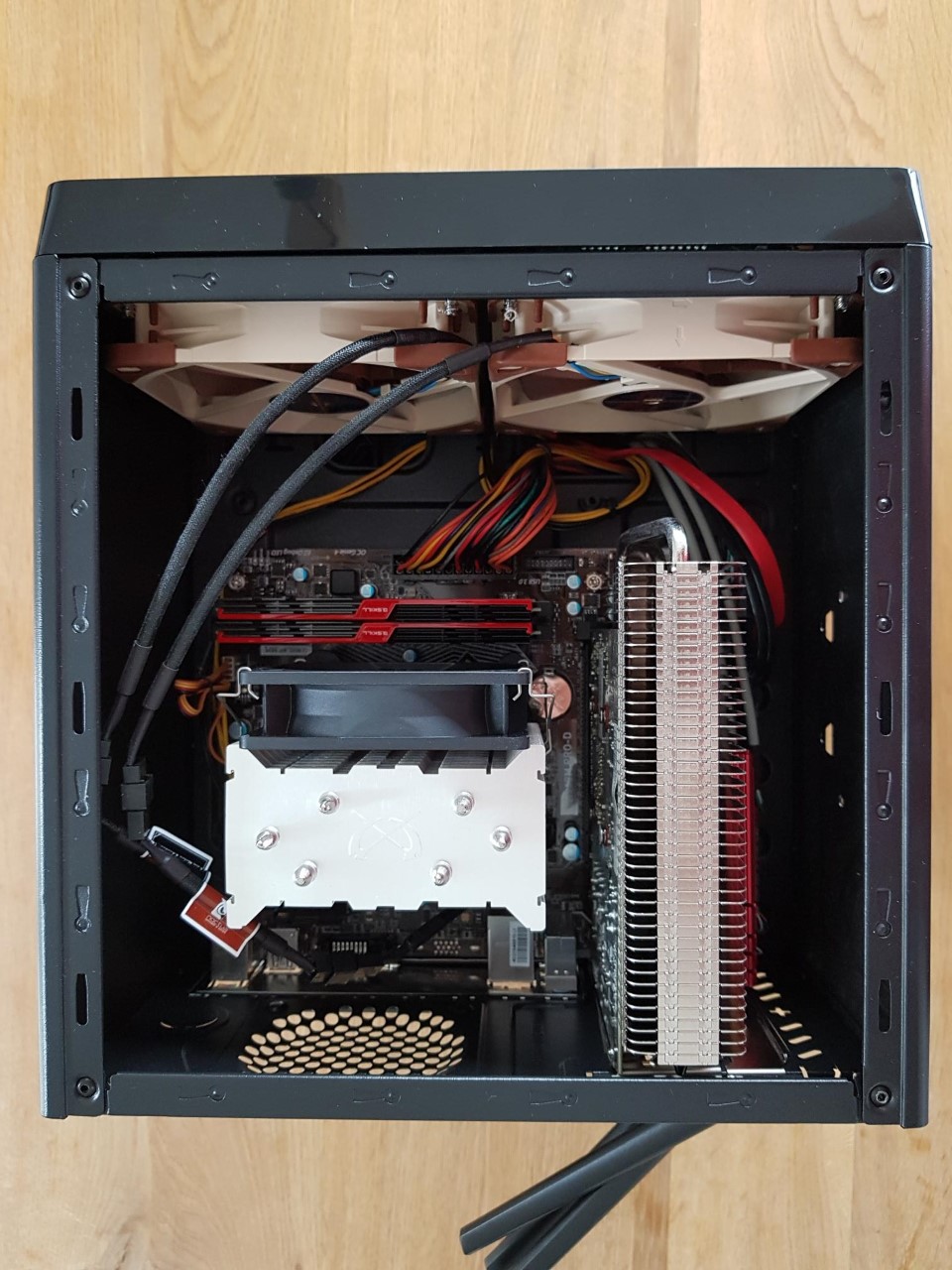 - LC-Power Micro Tower LC-2008MB mit zwei Noctua Frontlüftern, welche für eine gute Belüftung der passiv gekühlten GTX 1050Ti sorgen