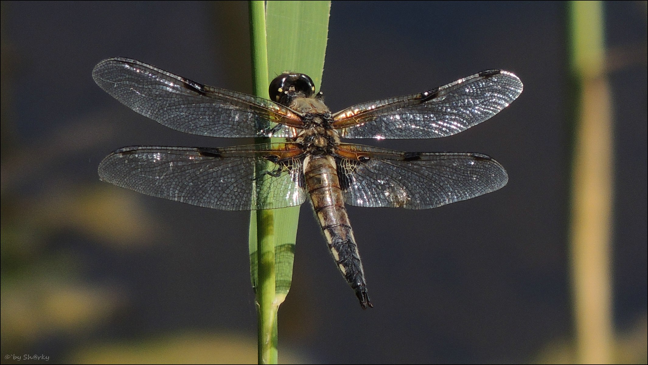 Der Kran ist ca. 100m entfernt, der Brachvogel ca. 50m, die Libelle auf 10m! -