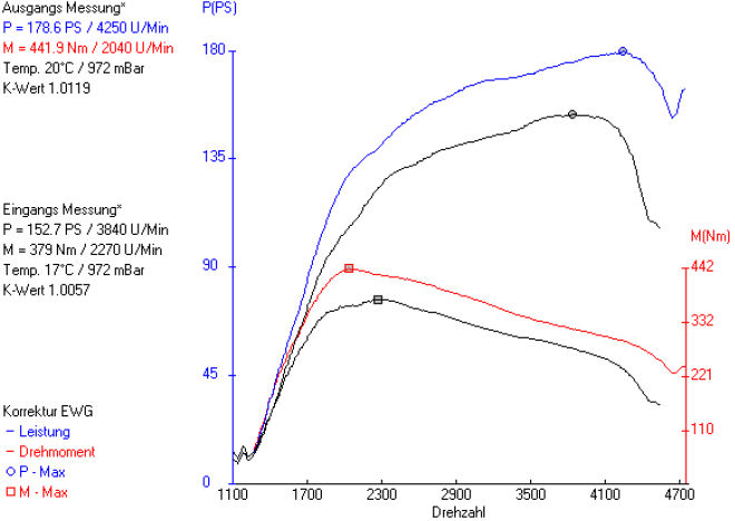 Drehmoment ist einigermassen so viel vorhanden, dass man sich nicht gleich beklagen muss. Von ''genug'' kann keine Rede sein