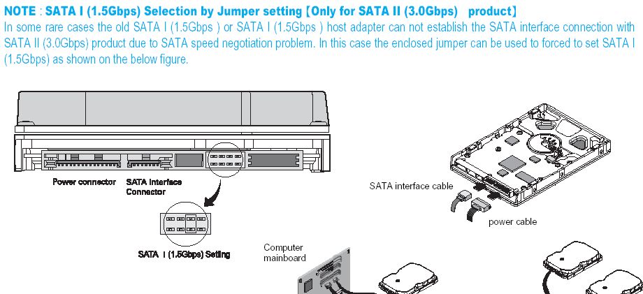 Sorry, aber auf dem Bild sieht man wirklich nicht viel, aber was ich zu erkenne glaube ist eben, dass man nur für 1.5Gbps den Jumper setzen müsste...