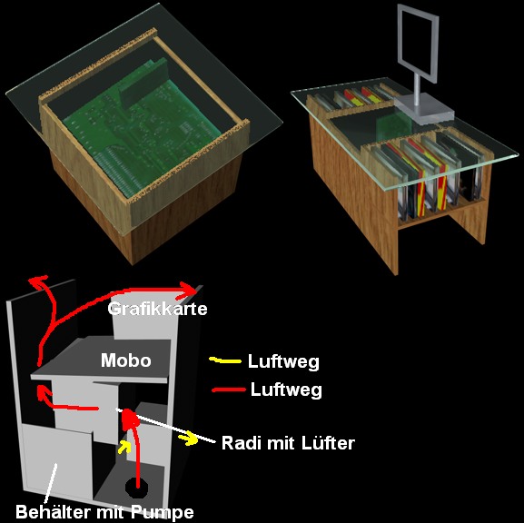 Ja, das Wasser geht direkt neben dem Harddiskkabel durch :p