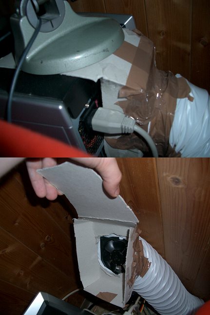 (die karton konstruktion sieht man nicht, weil sie hinter dem pc ist)übrigens: der 3 Meter lange schlauch hindert den luftstrom kaum, sogar wenn man wendungen etc macht, kommt immer noch viel luft