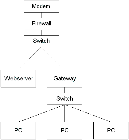 Dass das funzt, ist mir schon klar. Es ging mir jedoch darum zu wissen, ob es auch möglich ist, die Firewall so einzubauen wie oben auf der Skizze dargestellt, da so auch der Webserver geschützt wäre. So wie es scheint, gibt es auch Lösungen, mit denen etwas ähnliches realisierbar wäre, die aber leider auch einwenig mein Budget überschreiten.